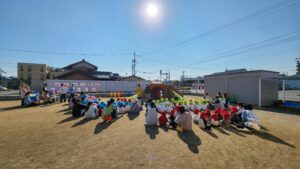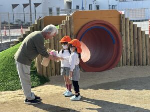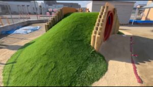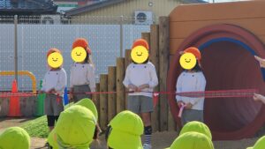 2025/11/17 築山 竣工式 本日、園庭に新しい遊具 “築山(つきやま)”が完成し、 その竣工式がありました。 下にはトンネル 階段を上って芝生の滑り台!! そんな遊具が仲間入りしました。 竣工式では テープカットに、 作っていただいた方に花束贈呈。 それを真剣に見ている子どもたち。 使い方のお約束もしっかり聞けていました。 最後は実際に使ってみました。 外遊びがますます楽しくなりそうです。 最後までお読みいただき、感謝いたします♡