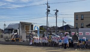 園庭で遊ぶ乳児クラスの子が興味津々!!
