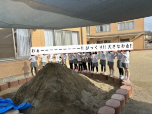 2026/2/5 砂場 直しました。 砂場を使いやすく 直しました。 完成したばかりなので 砂が大きな山のように 盛ってあります!! もう登るしかないですよね✨️ この笑顔✨️ 幸せいっぱいの松阪清泉愛育園です。 今日は?も?思いっきり砂遊びをしました。 色んな所から砂が出てくる… それは たくさん楽しんできたんだと ほほえましく見ていただけるとありがたいです。 最後までお読みいただき、感謝いたします♡