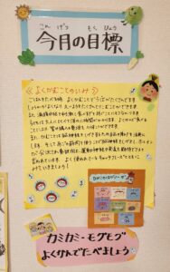 毎日の給食を展示する辺りで